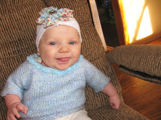 | Thanks Aunt Katrina for the BLUE! Sweater and headband!!:) |